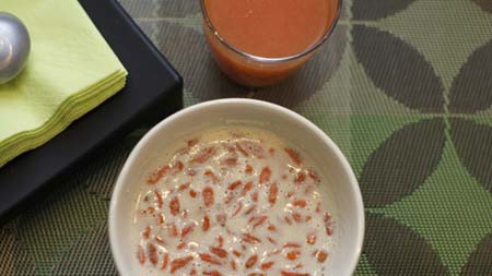 Następna propozycja na bardzo zdrowe śniadanie z dużą ilością błonnika. Idealne danie dla osób mających skazę białkową. Napój migdałowy zwany też mleczkiem migdałowym można kupić, jak i zrobić samemu (przepisu na napój migdałowy szukaj na mojej stronie). Amarantus stanowi cenne źródło łatwo przyswajalnego białka, które nie zawiera glutenu. Zaś jagody goji są owocami kolcowoju, który rośnie w Himalajach. Zawierają wiele cennych substancji: np. 18 rodzajów aminokwasów, witaminę C, z grupy B, żelazo, wapń, cynk, selen oraz flawonoidy. Chińczycy uważają, że jedzenie jagód goji, zapewnia zdrowie i długowieczność. Po takim śniadaniu przywitamy poranek pełni energii. Proponuję jeszcze wypić sok z czerwonych pomarańczy i bomba witaminowa z rana zaliczona:)