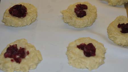Uwaga: układając ciasteczka na blaszce zostawiajmy duże odstępy, gdyż one się "rozleją" podczas pieczenia.