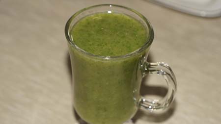 Jabłko zmiksować, dodać kiwi i banana, zmiksować. Wlać trochę wody i dodać szpinak, sok z cytryny, ponownie zmiksować. Jeżeli będzie za mało słodkie dosłodzić miodem. Teraz dolewamy wodę (tyle ile chcemy). Ja dolewam ok. pół szklanki, gdyż lubię w miarę gęsty koktajl.