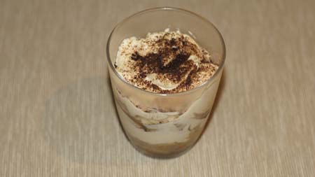 Przygotowuję kawę, kiedy ostygnie dodaję likier. Żółtka ucieram z cukrem oraz cukrem waniliowym. Następnie dodaję po jednej łyżce serka mascarpone i ucieram mikserem. Tiramisu przygotowuję w przeźroczystym, prostokątnym lub podłużnym naczyniu. Czasem przyrządzam w szklaneczkach lub deserówkach. Składniki układam naprzemiennie. Biszkopty wkładam na sekundę do wywaru z kawy i układam w naczyniu. Kiedy pierwszą warstwę biszkoptów mam ułożoną na to wykładam krem, a następnie posypuję przez sitko gorzkim kakao. Kolejna warstwa nasączonych biszkoptów, krem i kakao. I tak do wykończenia składników. U mnie przeważnie są 3 warstwy. Górną warstwę posypuję kakao i gotowe tiramisu wkładam do lodówki na co najmniej 4-5 godzin. Naczynie trzeba przykryć folią spożywczą, by nie złapało zapachów innych potraw z lodówki.