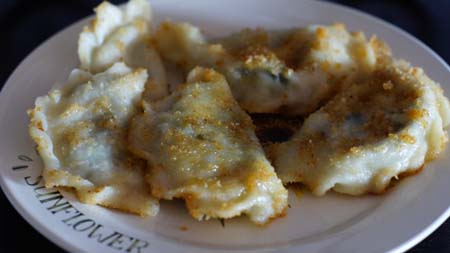 Kolejna odsłona pierogów: dziś z serem i szpinakiem polane bułką tartą. Nota bene jedne z moich ulubionych. Nawet jak ktoś nie przepada za szpinakiem, niech spróbuje takie pierogi, naprawdę są smaczne. Zapraszam!
