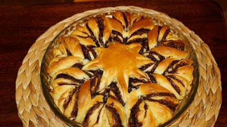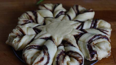 Bardzo smaczny wieniec drożdżowy i jaki efektowny. Na pierwszy rzut oka zrobienie takiego kwiatu z ciasta wydaje się trudne, ale wierzcie mi to nic trudnego i każdy sobie z tym poradzi. Każdy łasuch lubiący czekoladę z przyjemnością skosztuje tego ciasta. Nadziewać możemy nie tylko Nutellą, ale także orzechami z roztopioną czekoladą, masą makową, serową, dżemami - pełna dowolność. Gorąco zapraszam!