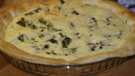 Zdrewniałe końcówki szparag odcinamy i chwilę gotujemy w osolonej i ocukrzonej wodzie (po pół łyżeczki). Szparagi mają być al`dente. Jajka mieszamy ze śmietanami, przyprawami i poszatkowaną natką pietruszki. Szparagi kroimy na 2-3 cm kawałki. Blaszkę do tarty wykładamy papierem do pieczenia i na to wykładamy ciasto francuskie. Na nim układamy szparagi i pokrojoną w paski szynkę. Jeśli chcemy dodać szpinak to układamy go na szparagi. Zalewamy to masą jajeczną, posypujemy serem żółtym i pieczemy w 180 C przez ok. 35 minut.