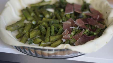 Kolejna propozycja na danie ze szparagami. Szybka i smaczna tarta, idealna na kolację przy białym winie, na spotkanie ze znajomymi. Za dużo nie trzeba się przy niej napracować, gdyż ciasto mamy gotowe. Dobra i na zimno i na ciepło. Może być alternatywą kanapki do pracy. Do szparag pasuje wiele dodatków, więc próbujcie i eksperymentujcie.