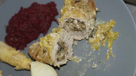 Schab inaczej - nadziewany pieczarkami i serem mozzarella skapany w sosie porowym. Bardzo smaczne danie, coś innego niż zwykły smażony kotlet schabowy. Serdecznie zapraszam!