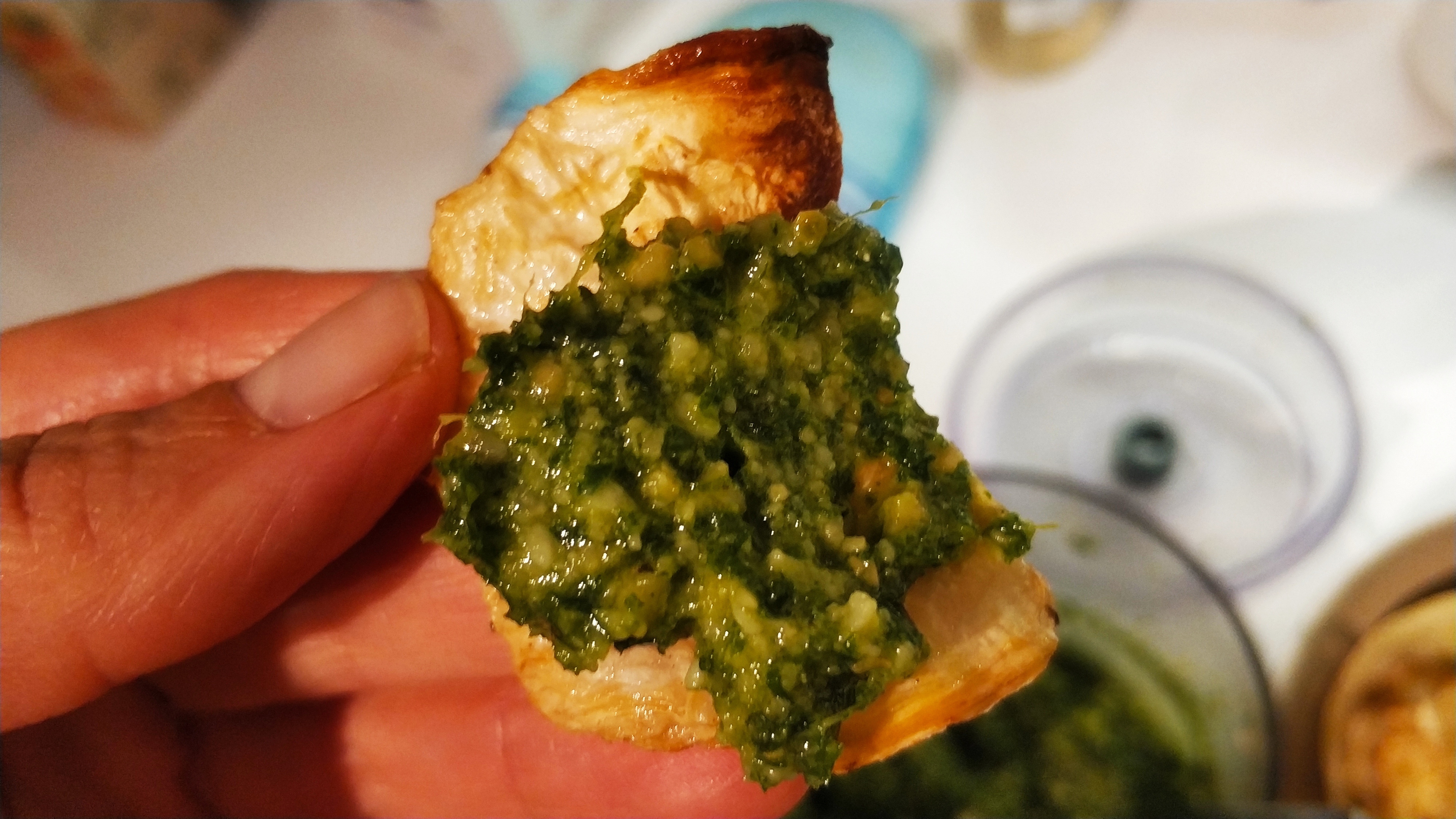 Jarmuż trzeba polubić. U mnie to chwilę trwało. A teraz bardzo często dodaję do zup, makaronów, czy warzyw z patelni. Ostatnio rozsmakowałam się w pesto, właśnie z jarmużu. Można zrobić je na dwa sposoby: lekko poddusić czosnek na oliwie i zblanszować jarmuż, lub wszystko na surowo. Takie pesto za każdym razem można zrobić inne np. dodając orzechy nerkowca, czy podprażone płatki migdałów lub sok z cytryny. Jak kto woli. Jest pyszne, ja najczęsciej podaję je z makaronem lub pieczonymi warzywami. Zapraszam!