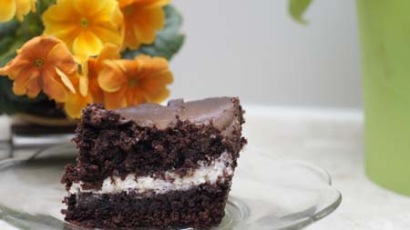 Ciasto czekoladowe typowe dla kuchni amerykańskiej. Mocno czekoladowe, wilgotne, o intensywnym smaku przełamane kokosowym, aksamitnym kremem. Myślę, że bez czekolady obejść się po prostu nie da. Jak sama nazwa wskazuje głównym składnikiem ciasta jest gorzka i mleczna czekolada, masło i jajka. Dodatkowo użyłam mleczka kokosowego i dzięki temu ciasto nie jest suche tylko wilgotne. Inspirowałam się przepisami z internetu, a że ten przepis znalazłam już dawno temu nie pamiętam z jakiej strony internetowej korzystałam.