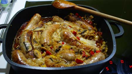 Zdjęcie poniżej ukazuje kiełbaski w trakcie duszenia.