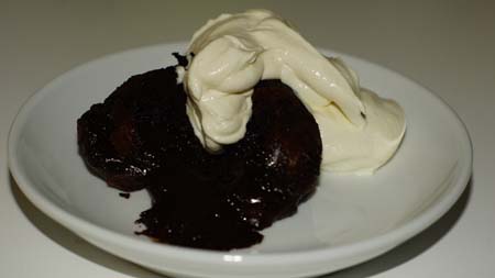 Jest to słynny francuski deser - po prostu babeczki z płynną czekoladą w środku. Gdy przekroimy babeczkę ze środka powinien wypłynąć czekoladowy sos. Sekretem tego deseru jest krótki czas pieczenia - tyle ile wymaga przepis, nie wydłużajmy nawet o minutę, bo wtedy nie wypłynie nam czekoladowa masa ze środka. Babeczki są pyszne i niemiłosiernie kuszą smakiem. Polecam je podawać z gałką lodów waniliowych lub z bitą śmietaną. Zapraszam!