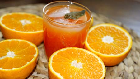 Pomarańcze myjemy, a następnie wyciskamy z nich sok. Dodajemy kostki lodu, by schłodziły sok. Delikatnie wlewamy likier. Dajemy tyle na ile mamy ochotę. Ja używam proporcji: 2/3 soku i 1/3 likieru. Dodajemy listki kubańskiego oregano/mięty. Zostawiamy na 5 min i delektujemy się pysznym smakiem napoju.