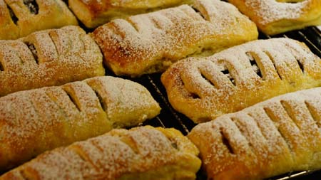 Ciasteczka te wykonane są z ciasta duńskiego, które przypomina trochę ciasto francuskie, trochę croissanty, tylko jest bardziej miękkie, a z zewnątrz chrupkie. Można je robić metodą przekładania ciasta i masła lub po prostu mikserem. Potocznie nazywane jako "danisze". Nadziewamy je np. masą migdałową, wiśniami, brzoskwiniami, dżemem, masą marcepanową.Warto je chociaż raz upiec, bo są przepyszne. Przepis pochodzi od Nigelli Lawson. Zapraszam!