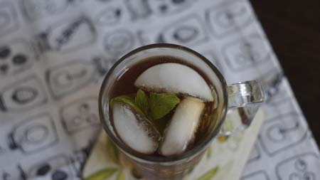 Idealny napój na gorące dni, smaczny, orzeźwiający i prosty w wykonaniu. Mrożoną herbatę/ice tea robi się nie tylko z czarnej herbaty, ale także z zielonej czy owocowej, które też smakują wybornie. Napój ten za każdym razem może inaczej smakować poprzez różne dodatki np. goździki, laska cynamonu, kardamon, melisa, jabłko etc. Niektórzy dodają szczyptę sody w trakcie parzenia, wtedy herbata będzie bardziej klarowna. Gorąco polecam!