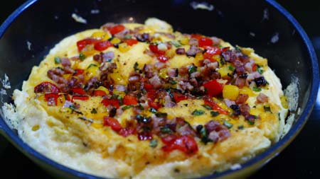 Omlet nadaje się i na śniadanie i na obiad, ba nawet na kolację. Podaje się go na słodko i na słono. Jedni omleta smażą tylko na jednej stronie, inni znowu nie ubijają białka, a ja przedstawiam Wam swój przepis na omleta. Jeśli mam ochotę na słodki omlet to nie dodaję żadnych dodatków, tylko polewam już usmażony syropem klonowym. Serdecznie zapraszam!