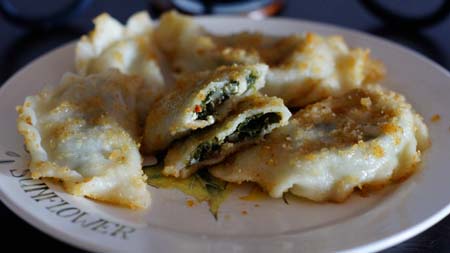 Kolejna odsłona pierogów: dziś z serem i szpinakiem polane bułką tartą. Nota bene jedne z moich ulubionych. Nawet jak ktoś nie przepada za szpinakiem, niech spróbuje takie pierogi, naprawdę są smaczne. Zapraszam!