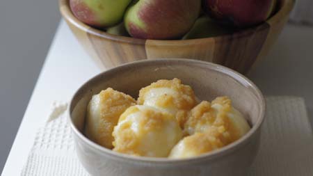 Jedno z tych dań, które większość z nas uwielbia. Dziś w prezentowanej wersji na słodko z jabłkami. Super pomysł na niewykorzystane ziemniaki z poprzedniego dnia. Danie bardzo wydajne i syte. Zapraszam!