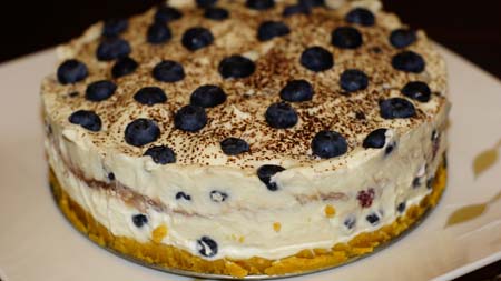 Łatwy i szybki w przygotowaniu torcik. Akurat miałam borówki, ale większość owoców będzie tu pasować. Smak maślanego ciasta w połączeniu z kremowym serkiem złamanym smakiem borówek jest niepokojąco uzależniający:) Polecam!