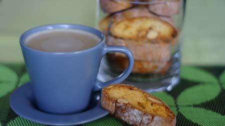Są to włoskie sucharki, chrupiące o pomarańczowym lub cytrynowym aromacie z migdałami. Idealne do maczania w kawie, kawie zbożowej czy winie. Przechowujemy je w słoiku lub hermetycznie zamykanej puszce. Zapraszam!