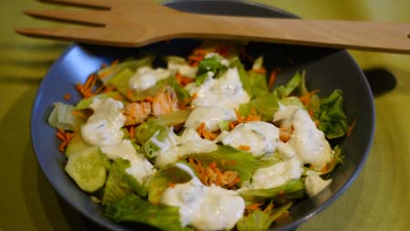 Zdrowa i lekka propozycja na kolację. Chrupiące warzywa z pieczonym łososiem polane czosnkowym sosem-palce lizać.Jeżeli zostanie Wam z obiadu kawałek pieczonego łososia, wykorzystajcie go do sałatki. Proponuję serwować z lampką białego wytrawnego wina. Zapraszam!