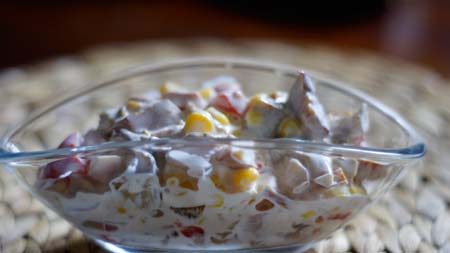 Kurczaka wędzonego można podać na różne sposoby. Ja bardzo go lubię w sałatce z grzybkami i papryką. Połączenie składników sałatki daje pyszne doznania smakowe. Polecam!