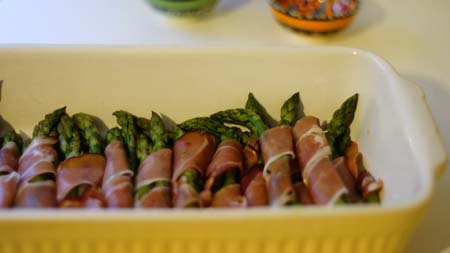 Kolejna propozycja dania ze szparag, nota bene moja ulubiona - szparagi zapiekane w szynce parmeńskiej pod serową kołderką. Można nie dodawać sera-danie będzie mniej kaloryczne.